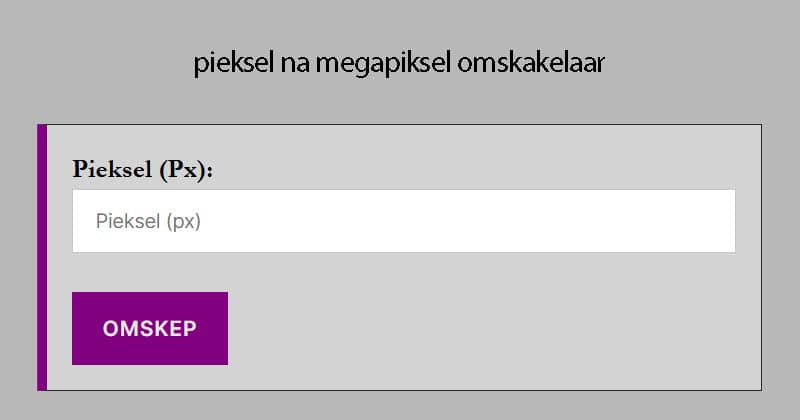 Dit is ‘n aanlyn omskakelaar wat jy kan gebruik om pixel (px) na megapixel (mp) om te skakel. ‘n Megapixel is een miljoen pixels en word algemeen gebruik om die aantal pixels in ‘n beeld en die vlak van beeldkwaliteit te beskryf.