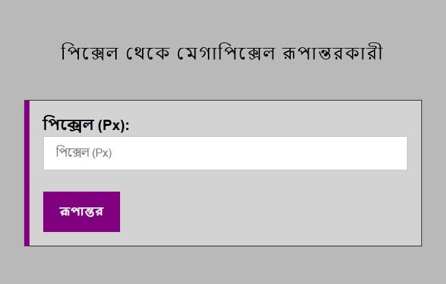 পিক্সেল থেকে মেগাপিক্সেল রূপান্তরকারী