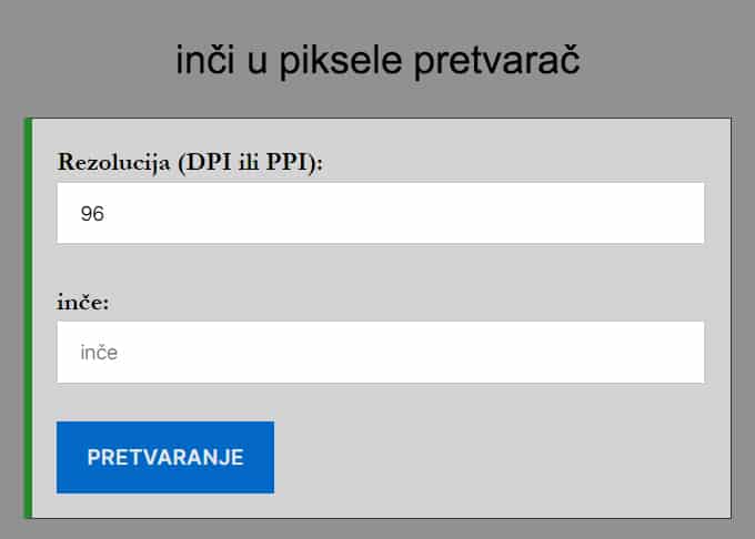 Ovo je obično potrebno za konverziju inča u px ako je rezolucija 96.