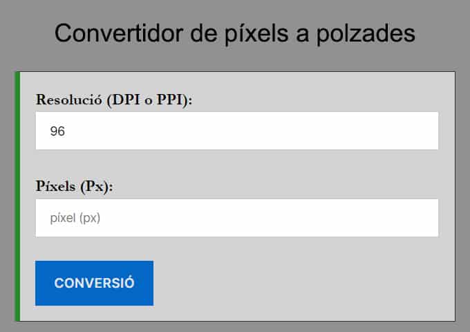 Convertidor de píxels a polzades
