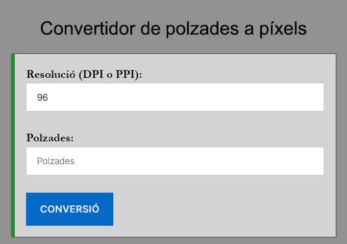 A més, podeu utilitzar aquesta fórmula per convertir polzades a px: