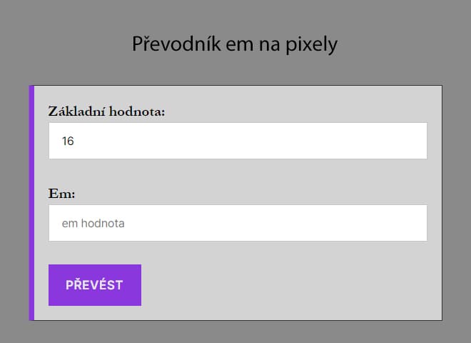 Nejlepší způsob, jak převést em na px, je použít výše uvedený online převodník.