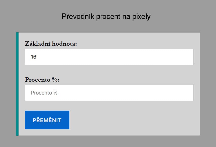 Kromě výše uvedeného online převodníku můžete k převodu procent na px použít následující rovnici