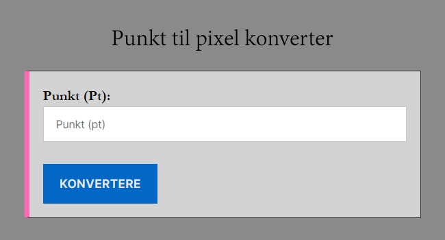 For at konvertere pt til px automatisk kan du bruge konverteren ovenfor. Denne konverter konverterer hurtigt punktværdi til pixelværdi, så du kan koncentrere dig om det, du laver.