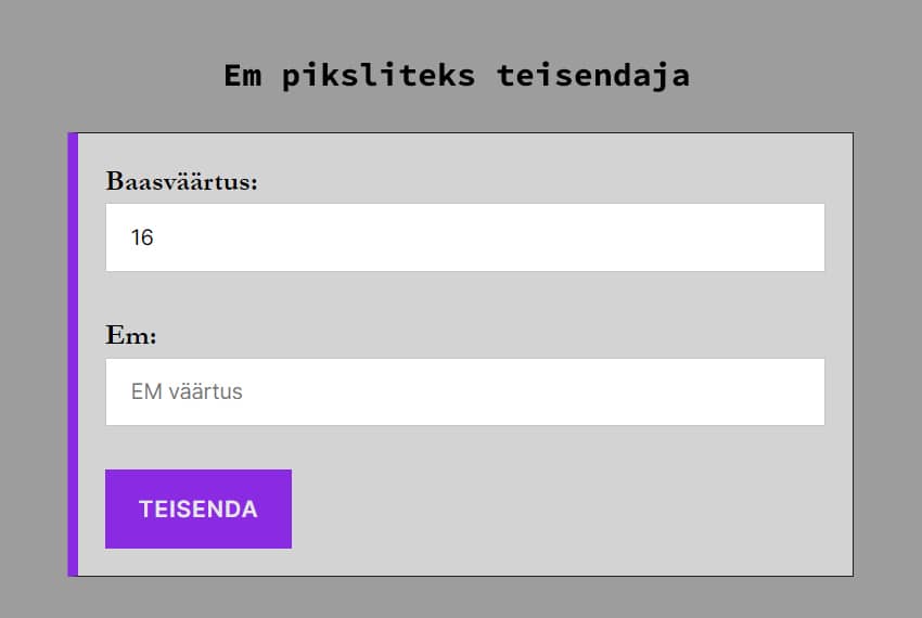 Parim viis em-i teisendamiseks px-ks on ülaltoodud veebimuunduri kasutamine.