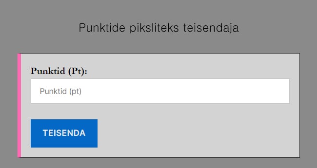 Kuidas teisendada punkt piksliks automaatselt ja käsitsi?