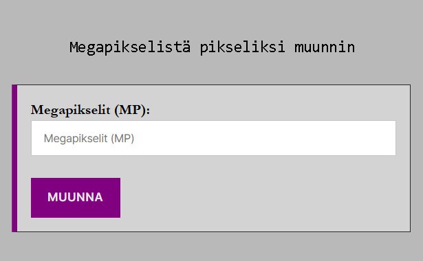 Verkossa voit käyttää yllä tarjoamaamme megapikseli-pikseli-muunninta muunnoksen tekemiseen.
