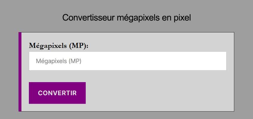 Tout d’abord, entrez la valeur en Mégapixels (mp)