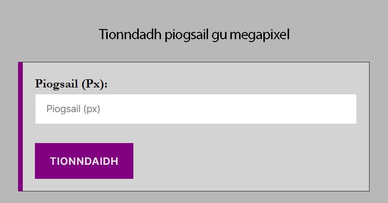 Seo clàr airson toradh tionndaidh piogsail gu megapixel. Cuideachd, faodaidh tu an inneal-tionndaidh gu h-àrd a chleachdadh an-asgaidh.