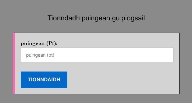 | puingean | piogsail |