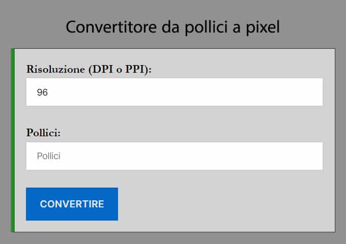Inoltre, puoi utilizzare questa formula per convertire pollici in px: