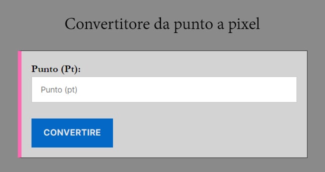 Questo è un convertitore online e facile che puoi usare per convertire punti (pt) in pixel (px). Inserisci il valore del punto (pt) che desideri convertire in pixel (px) e fai clic sul pulsante Converti!