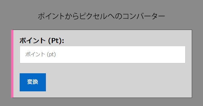 これは、ポイント(pt)をピクセル(px)に変換するために使用できるオンラインで簡単なコンバーターです。ピクセル(px)に変換するポイント(pt)値を入力し、[変換]ボタンをクリックします。