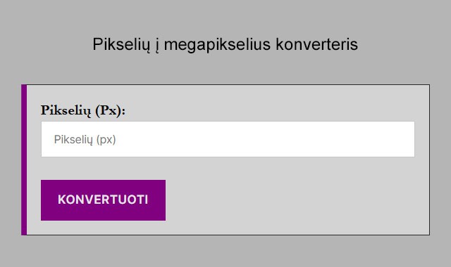 Taip pat galite nemokamai konvertuoti megapikselius į pikselius naudodami (Megapikselių į pikselius konverteris).