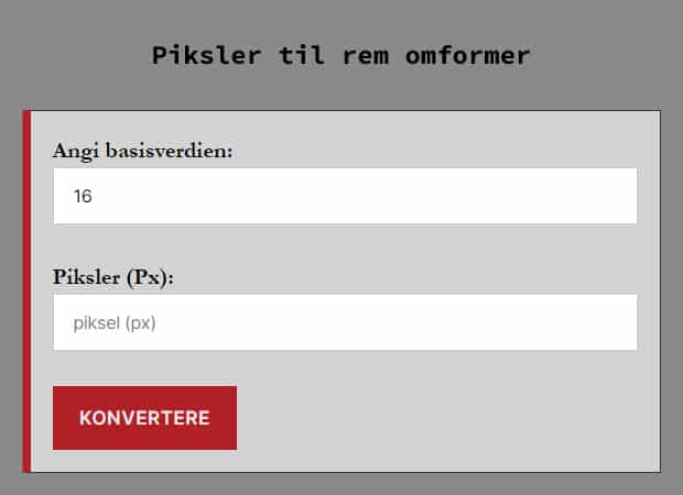 du kan bruke denne ligningen til å konvertere piksel til Rem: Rem = piksel / basisstørrelse.