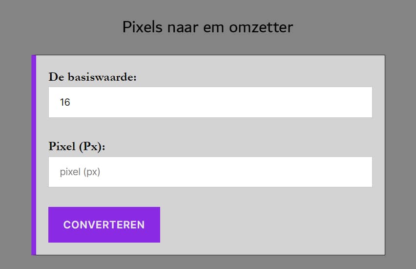 Em = pixel / tekstgrootte (16 is de standaardwaarde)