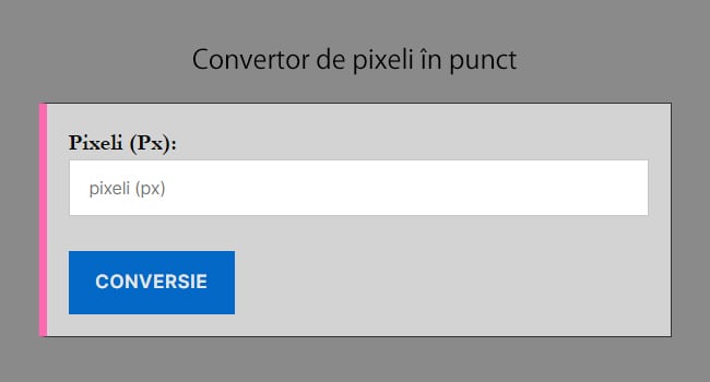 Știm că 1 inch = 96 pixeli, și 1 inch = 72 puncte, deci 96 pixeli = 72 puncte! și de aici, avem această ecuație: