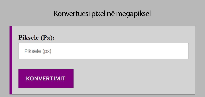 Ky është një konvertues online që mund të përdorni për të konvertuar pikselët (px) në megapikselë (mp). Megapiksel është një milion piksel, dhe përdoret zakonisht për të përshkruar numrin e pikselëve në një imazh dhe nivelin e cilësisë së imazhit.