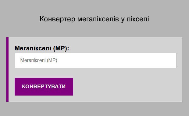 Піксель (px) = Мегапіксель (MP) * 1000000