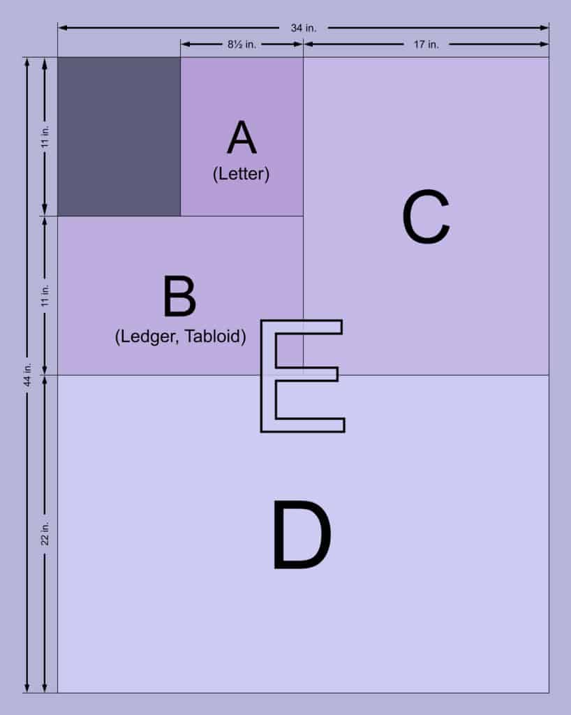 | ANSI E | 34 x 44 inches | 864 x 1118 mm |